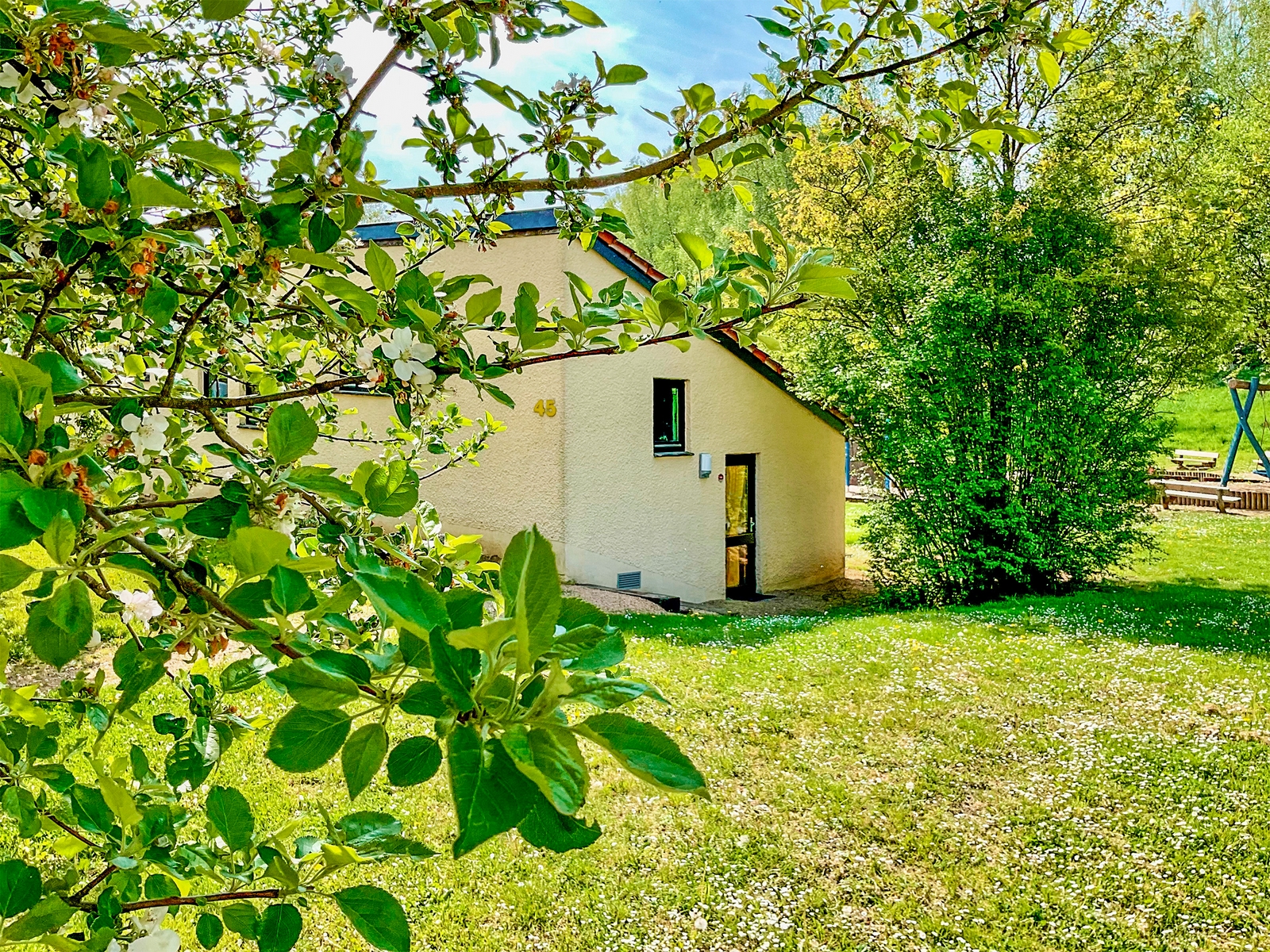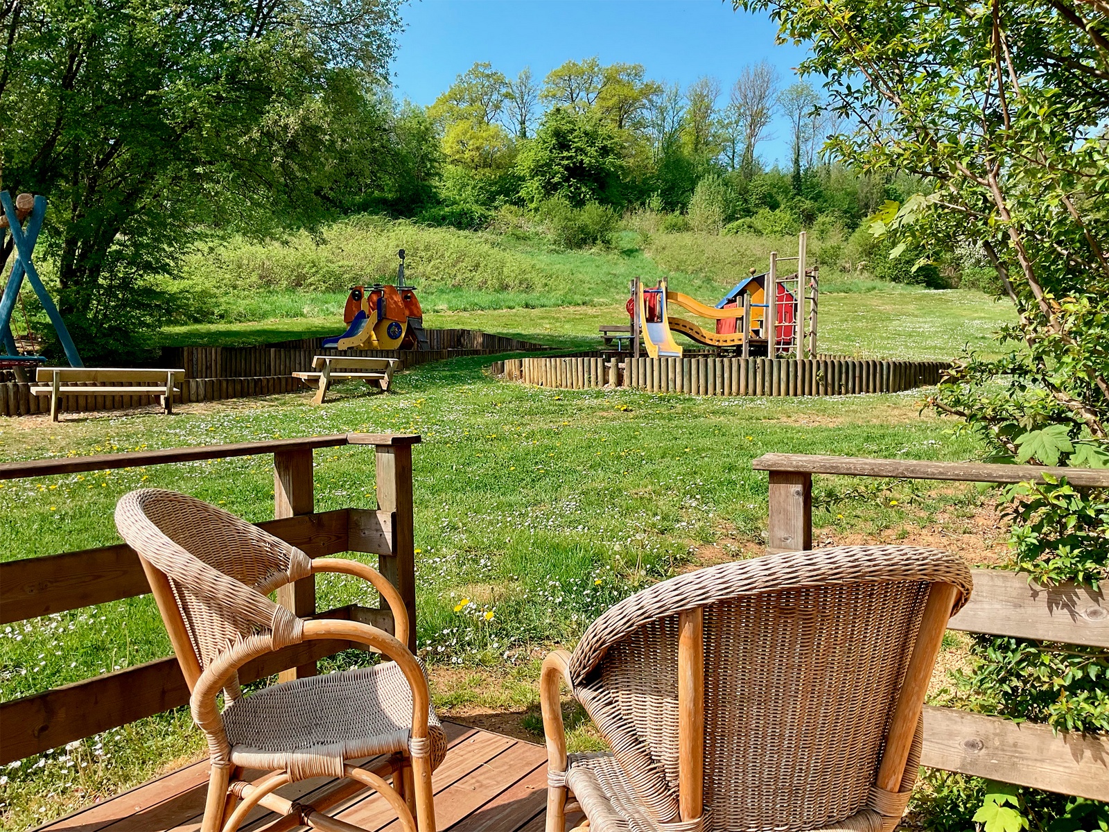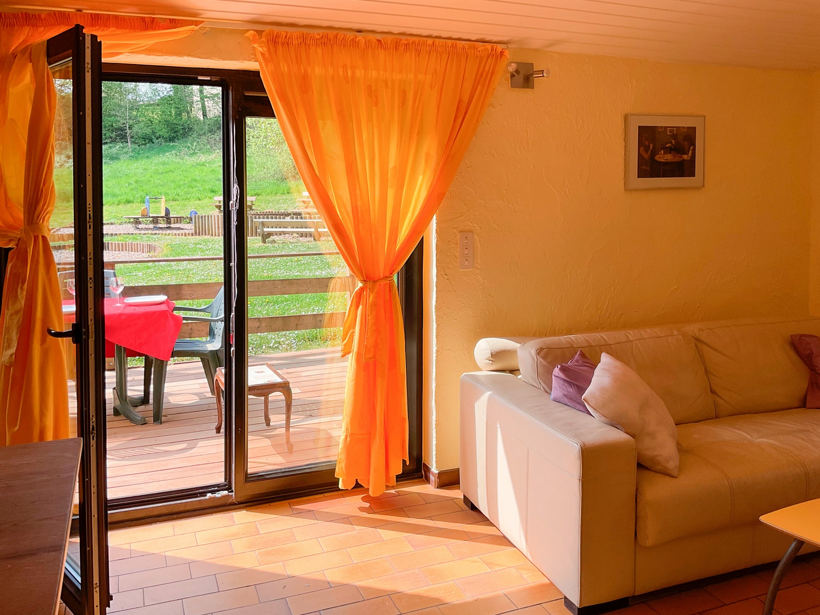 Un espace de vie de 42 m2 situé plein sud donnant sur une grande plaine de jeux entretenue et sécurisée dans le choix des jeux, vous permettra de passer un moment de détente sur une terrasse aménagée avec vos enfants.